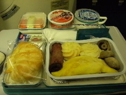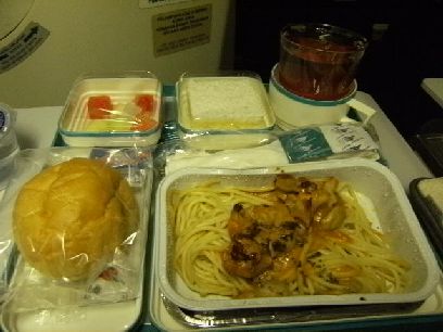 飛行機が飛んで、平行運行になってすぐに、夕飯が出た。